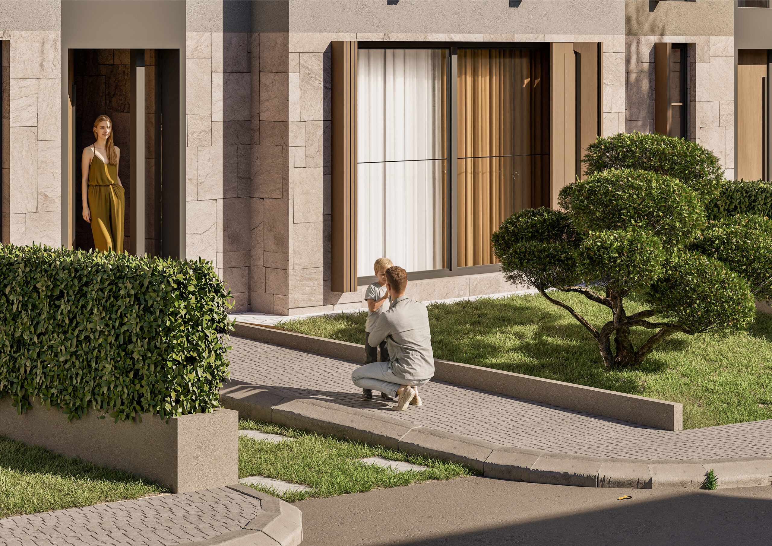 Të gjitha shtëpitë janë të unifikuara në gjuhë arkitektonike, duke reflektuar një stil minimalist modern me volumetri të thjeshta, linja të pastra.
